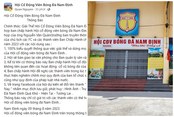 Bóng đá Nam Định có biến lớn: Hội CĐV chính thức giải thể, trả lại hết đồ và văn phòng